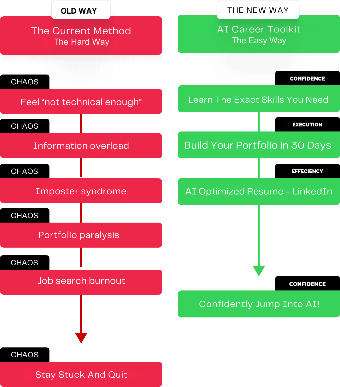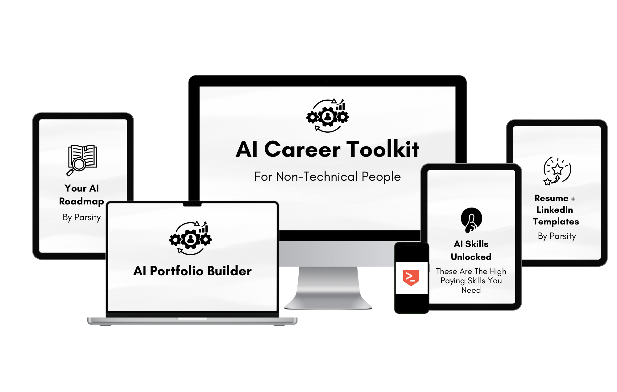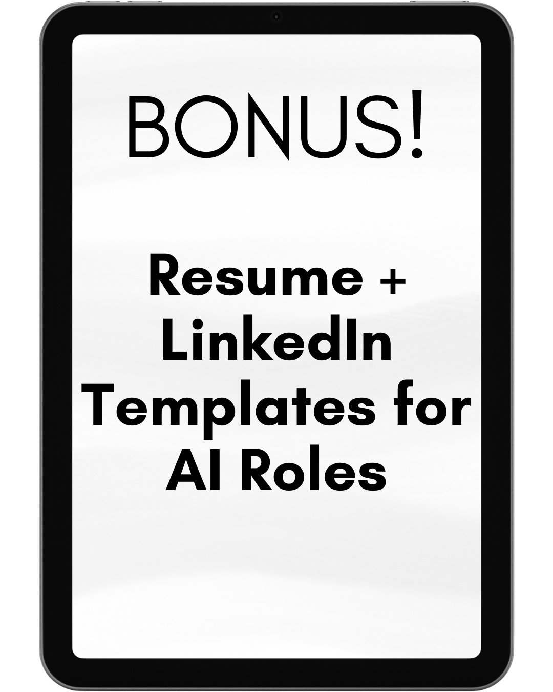 You are getting access to the AI Career Toolkit and resources, available instantly. You are also getting The AI Portfolio Developer bonus. You are getting the AI Skills Unlocked bonus. And, you’re getting the Resume + LinkedIn Templates for AI roles bonus.